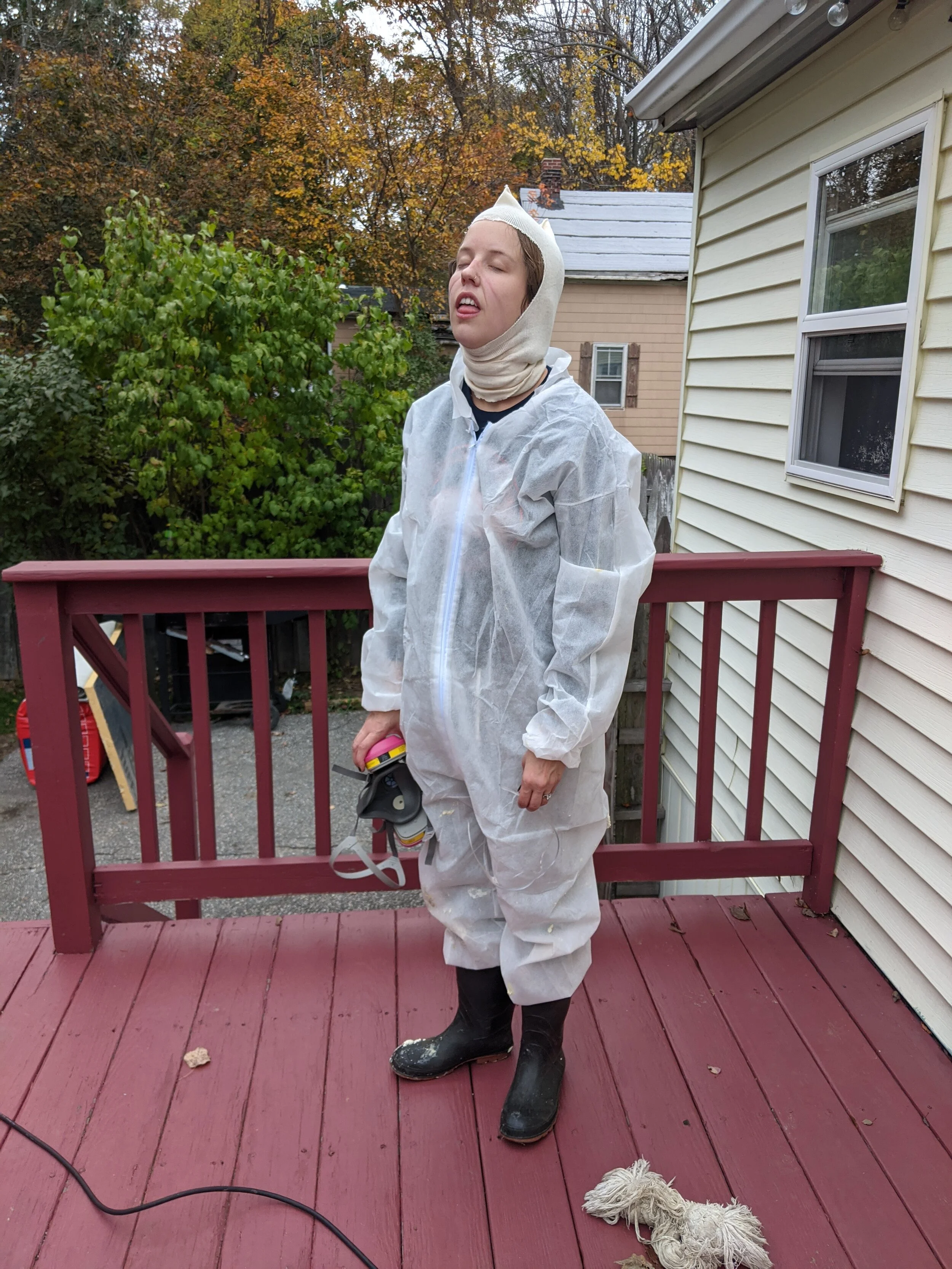 That’s right. Nothing went wrong, and it was all very boring…KIDDING, of course. If you watch that timelapse video carefully, you will notice a point near the end after which everything moves much faster. That’s because the trigger on the spray gun of the first kit was BROKEN! Literally, the plastic was just snapped, so it would only release one of the chemicals at a time, which, of course, is a PROBLEM, because the whole reason this stuff works is by combining the two different chemicals!! But because we only had a limited amount of insulation, and it’s VERY expensive, I had to make due. I put a wrench across the two parts of the broken trigger and pulled on it (holding the wrench like bicycle handles), until the kit ran out and I could use the second one, with a fully functional trigger. My hands got very sore and I was very relieved when I was finally able to switch to the other kit!